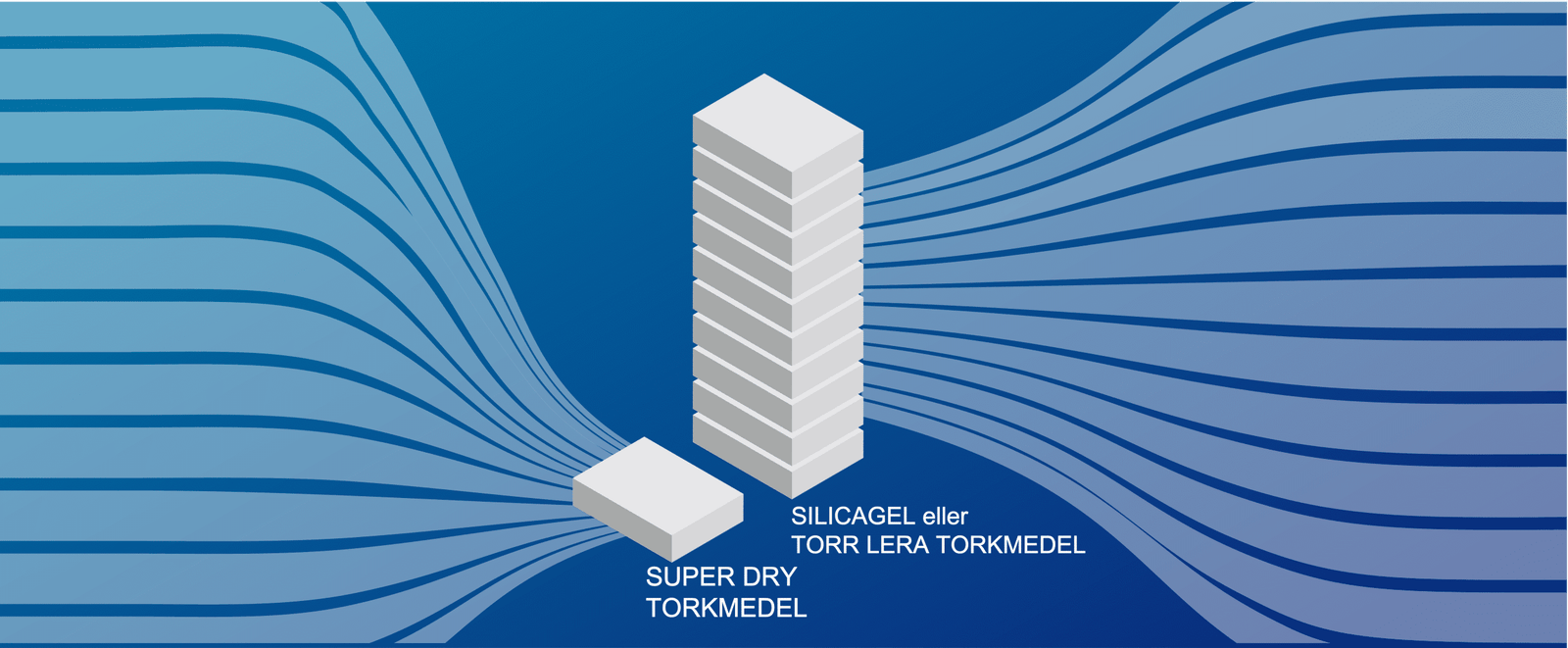 Super Dry torkmedel absorberar 10 gånger mer fukt än Silicagel eller lera och kan användas inom ett större temperaturområde. Super Dry’s torkmedel är den överlägset bästa lösningen för att förhindra fuktskador i containrar, transportlådor och produktförpackningar. Torkmedlet håller din last helt säker från risken för fuktskador.