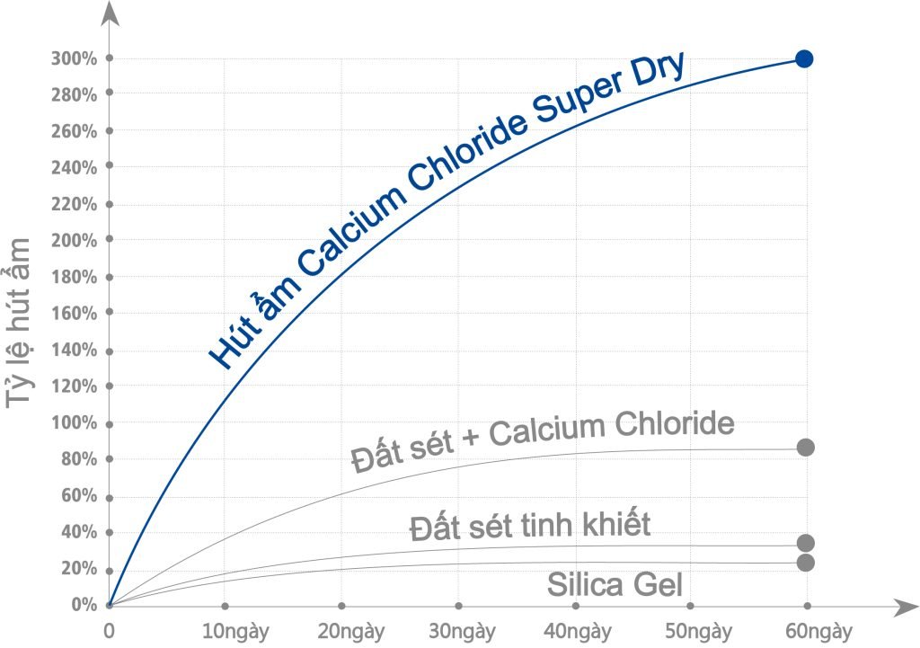 Khả năng hấp thụ độ ẩm của chất hút ẩm SUPER DRY cao gấp 10 lần silica gel và đất sét, kết hợp với phạm vi nhiệt độ hoạt động rộng. Chất hút ẩm SUPER DRY là giải pháp vượt trội để chống ẩm cho vận chuyển đóng container, đóng gói bao bì hoặc hộp carton, giúp bảo vệ hàng hóa tránh rủi ro bị thiệt hại do độ ẩm.