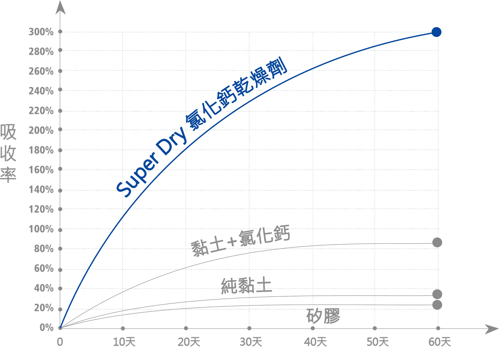 SUPER DRY 乾燥劑經驗證,其吸收能力超過其淨重的 300%,並可在 -5°C 至 +90°C 的溫度下連續吸收水分長達 90 天。