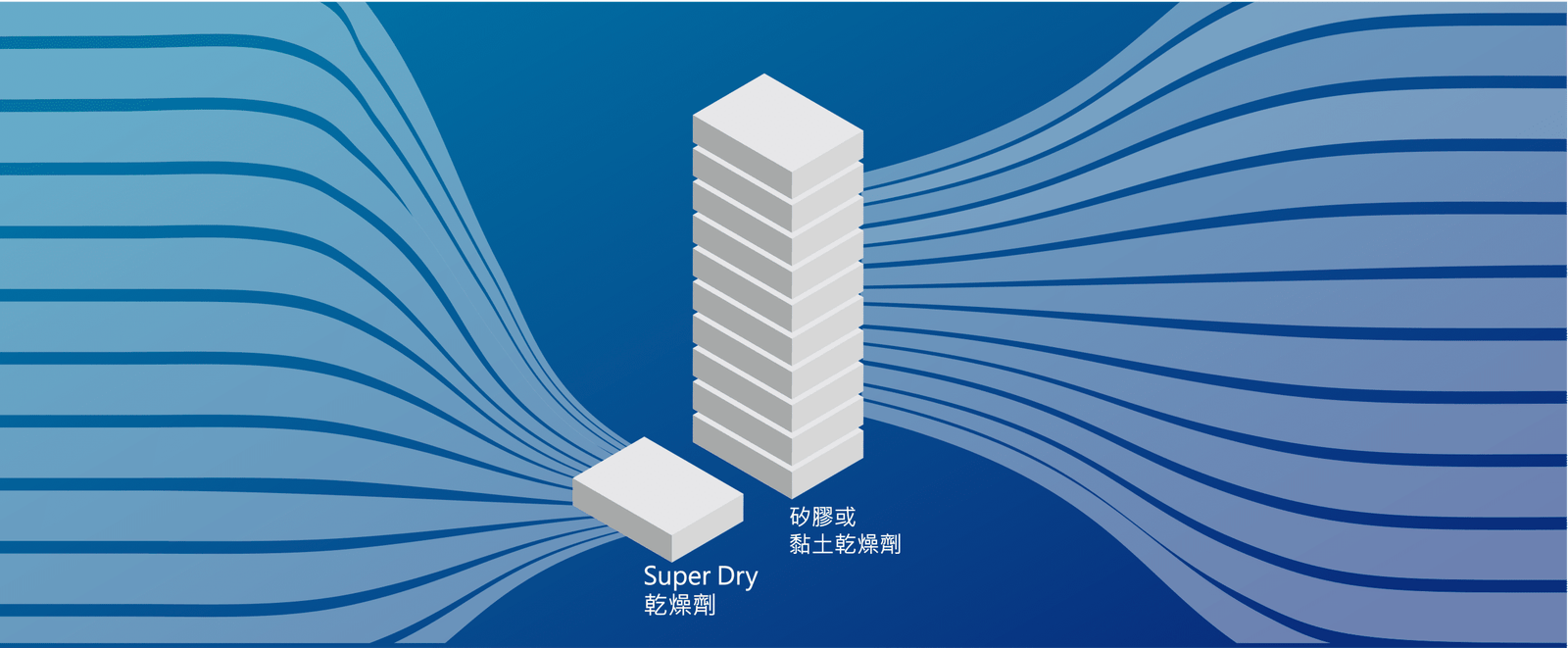 SUPER DRY乾燥劑可有效去除容器及包裝內部的水分以保持貨物乾爽,防止受潮而損壞。 SUPER DRY乾燥劑袋特別設計以吸收空氣中的水分,從而降低塑料袋、紙箱和容器等受控環境中的濕度。